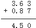 ①3.63+0.87=4.5;