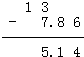 ②13-7.86=5.14;