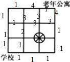 答:从学校到老年公寓有 11种最近的走法.