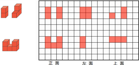 用方格纸画出从正面、左面和上面看到的图形