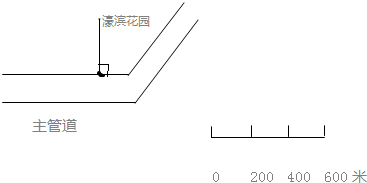 分析:根据点到直线的所有连接线段中垂直线段最短,那么图中的管道就是过濠滨还原向主管道画出的垂直线段,由此量出这条线段的长度,利用图中的线段比例尺即可求得此管道的实际长度.