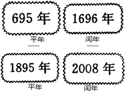 在各年份下填上“闰年”或“平年”.