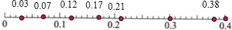 0.4数轴上就有,0.38在0.3的右面第8格;
