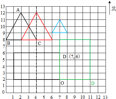 (3)观察图形可知,点D旋转后的对应位置用数对可表示为(11,2);