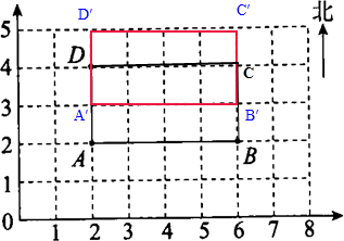 (3)如果将长方形ABCD向上(正北方向)平移一格.那么平移后这个长方形四个顶点的位置是A′______,B′______,C′______,D′______.
