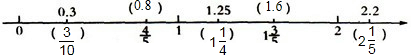 在直线上面的括号里填上适当的小数,在直线下面的括号里填上适当的分数.