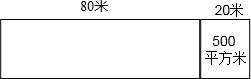 全民健身中心计划建一个长80米的游泳池,实际施工时,对计划进行了修改,将游泳池的长增加了20米,结果面积增加500平方米.这个游泳池实际占地面积多少平方米?(先画图分析,再解答)