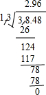 分析:根据小数竖式除法的计算法则进行解答即可.