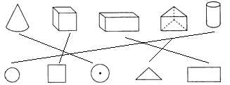下面的立体图形从上面看到的分别是什么形状?搭一搭,连一连.