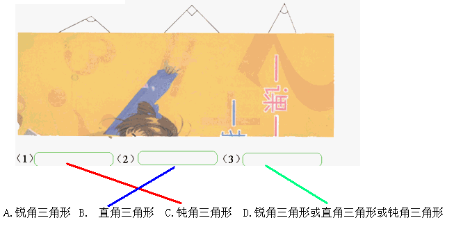 A.锐角三角形 B. 直角三角形 C.钝角三角形 D.锐角三角形或直角三角形或钝角三角形