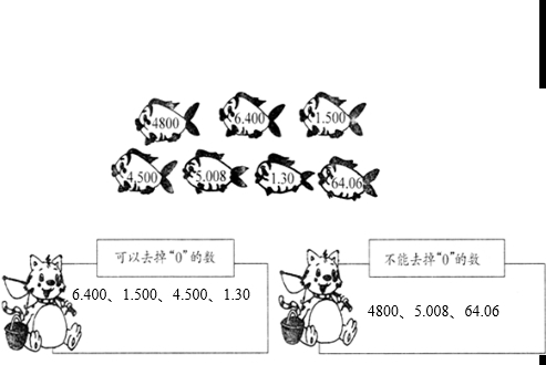 可以去掉0的数有:6.400=6.4,1.500=1.5,4.500=4.5,1.30=1.3,