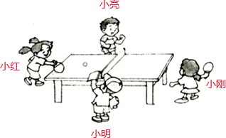 一天,小红、小明、小亮、小刚去打乒乓球.他们四人刚好站在球台的四面.已知小红的对面是小刚,小亮的对面是小明.小红是女生,她的右边是小明.请在图中标出他们的名字.