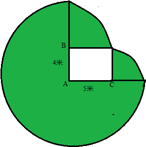 (2012?广州一模)有一个牛棚,周围是一片青草,牛棚长5米,宽4米,牛棚的一角用一根绳子拴着一头牛,绳子长9米,问这头牛能吃到的青草的面积最多有多少平方米?(不算牛棚内的面积)