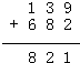 | 用竖式计算并标☆的要验算. ☆139+682= | ☆701-573= |