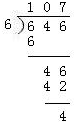 646÷6=107…4