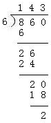 ★860÷6=143…2