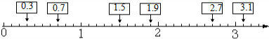分析:数轴是规定了原点(0点)、方向和单位长度的直线,在原点(0点)左边的点所表示的数都是负数,右边的点表示的数都是正数,这4个空都在原点(0点)右边,都表示正数.在这里把1个单位长度平均分成10份,每份表示0.1,