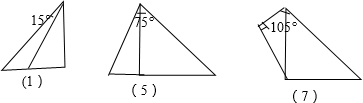 将一副三角板摆放在一起(可以叠放),使同时出现15°,30°,45°,60°,75°,90°,105°这七个角,请画图说明并表示出这些角.