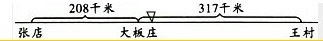 分析:(1)客车速度为每小时75千米,则3小时可行驶75×3=225千米,即即超过大板庄225-208=17千米,据此在线段图中表示即可;