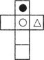 分析:如图,根据正方体展开图的11种特征,属于“1-4-1”结构,折成正方体后,有图案的三个面相邻,当从正面看到三角形图案时,上面是空心圆图案,右侧是实心圆图案,当从正面看到实心圆图案时,上面是三角形图案,右侧是空心圆图案,据此进行选择.