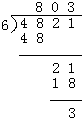 4821÷6=803…3