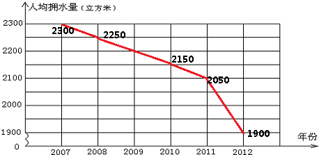 | 人均拥水量(立方米) | 2300 | 2250 | 2150 | 2050 | 1900 |