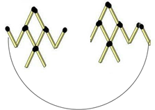 用10根火柴棍摆成向上飞的蝙蝠图,请你移动3根火柴,使它变成向下飞的蝙蝠图形?