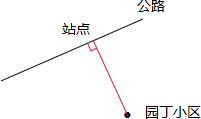 为了方便园丁小区的居民乘坐公交车,公交公司拟在公路上设一个站点,这个站点设在哪儿最合适?为什么?