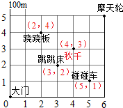 (1)如果用(3,2)表示跳跳床的位置,你能用数对表示其他游乐设施的位置吗?请你写出来.