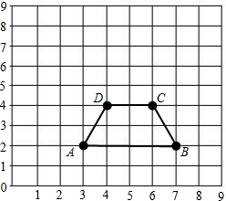 (1)在方格图中标出A(3,2),B(7,2),C(6,4),D(4,4)四点,并顺次连接ABCDA.