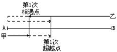 第一次相遇时甲、乙各行了80分钟,到第一次超越时,甲共行80+20=100分钟,而乙在第一次相遇到第一次超越的这20分钟内行的路程,相当于甲行80+100=180(分)的路,于是可求它们的速度之比.