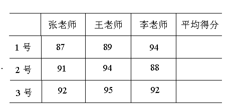下面是三位老师给参加“新苗杯”儿童书法比赛的学生打出的分数。