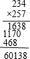 234×257=60138.