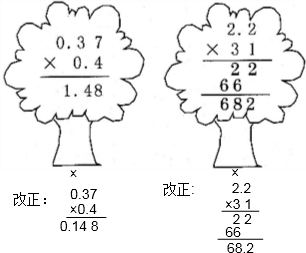 根据小数乘法的计算法则,先按照整数乘法的计算法则算出积,再看两个因数一共有几位小数,就从积的右边起数出几位点上小数点.据此解答.
