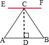 在下面的三角形中,从C点向它的对边AB作高,再过C点作AB的平行线.