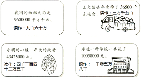 (2)阿拉伯沙漠是世界第二大沙漠,面积约是【2330000】平方千米,这个数读作:______.