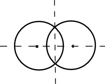 有2条对称轴的轴对称图形,可以画出多种,如两个等圆相切或相交等.如图,由于这两个圆的半径相等,这两个圆的交点到两圆心的距离相等,所以过这两个交点的直线就是这两个圆的一条对称轴,这两个圆的圆心的连线所在的直线是这两个圆的另一条对称轴.