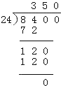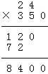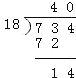 | 734÷18= | 6446÷30= | 24×350=验算: |