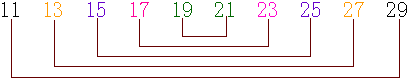 分析:本题可用配对方法进行巧算:11+13+15+17+19+21+23+25+27+29可按下图进行配对计算:即11+13+15+17+19+21+23+25+27+29=(11+29)+(13+27)+(15+25)+(17+23)+(19+21).
