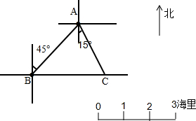 灯塔A在灯塔B的北偏东45°方向3海里处,一艘轮船C在灯塔B的正东方向,在灯塔A的南偏东15°方向,请你画图确定C的位置.(在图上1海里用1厘米的线段表示)