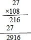 27×108=2916,