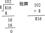 解答:解:(1)816÷8=102;