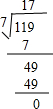 (3)119÷7=17;