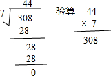 (2)308÷7=44;