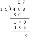 408÷15=27…3
