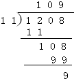 1208÷11=109…9