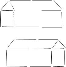 如下图所示,除虚线表示的2根火柴外,其余火柴是左、右对称的,所以改变房子的方向与这些火柴无关,应移动虚线表示的2根火柴(见右下图).