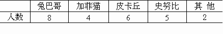 (1)兔巴哥,其他 (2)8 (3)10 (4)喜欢兔巴哥的同学比喜欢加菲猫的同学多几个? |
