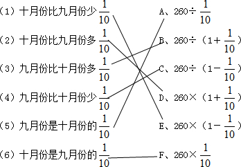某工厂九月份烧煤260吨,十月份烧煤多少吨?把条件与对应的算式连接起来.