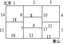 答:从北京到黄山的最短路线共有10条.